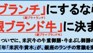 「銀ブランチ」にするなら、「銀ブランド牛」に決まり。「銀ブラ」ついでに、米沢牛の...