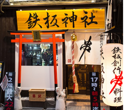 『鉄板神社』は、13坪わずか24席月商1850万円をたたき出す人気鉄板創作串料理の店。 「席数売り上げ日本一」を誇る。大阪市内に6店舗を展開する。 外食系業界誌『月刊食堂』にも「坪月商50万円を超える怪物店」として掲載された人気店。
