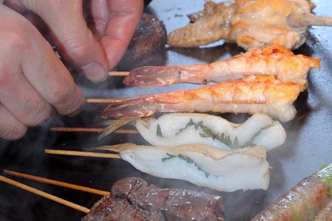 焼き手が客のペースに合わせて鉄板串料理をどんどん出してくれる「おまかせコース」が大人気!