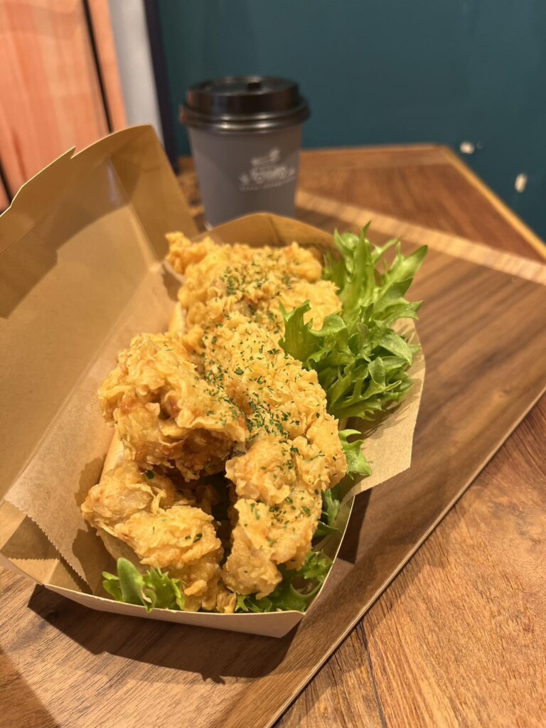 下味に12時間以上漬け、特製パウダーを付けて専用フライヤーで揚げているので、ジューシーでヘルシー!そして、ザクザク食感を楽しめる!
