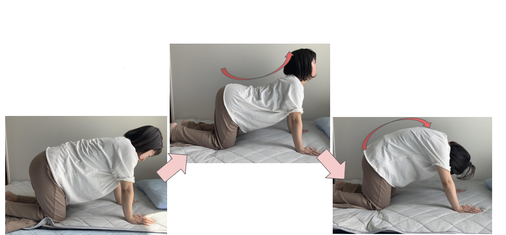 産前はお腹が大きくなる時に股関節や背中の筋肉で支えるため、腰や背中の痛みを誘発する。腰や背中の痛み緩和と大きくなるお腹に備えた運動。