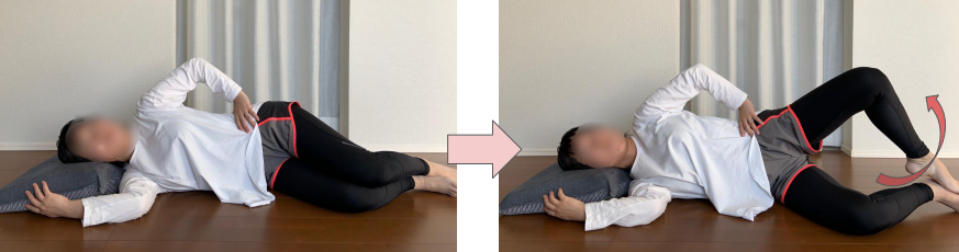骨盤底筋を働かせるためには、隣接する股関節の動きが少ないと制御されるため、股関節の動きを出すための運動になっている。
