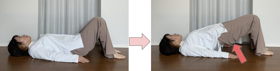 5秒保持×10回。骨盤周りの体幹を強化する運動。