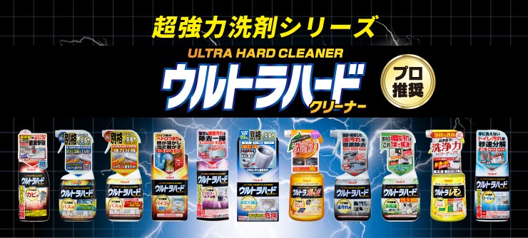 「ウルトラハードシリーズ」は、バス用・トイレ用・油汚れ用・洗たく槽用など自宅用だけでも12種類をラインアップ!
