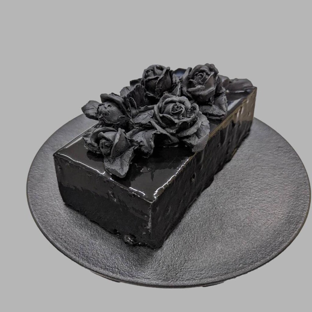【細工が困難な生チョコで黒バラを装飾したチーズケーキ!】竹炭が入った黒いチーズケーキ「BOUQUET CHEESE CAKE」