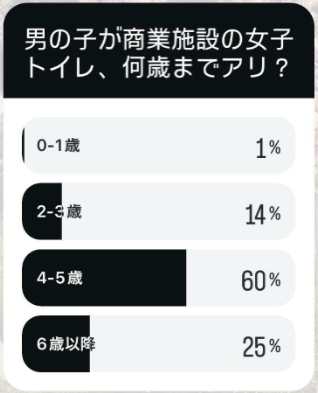 ■男児の女性トイレ利用は、「4~5歳までならアリ」が60%で最多