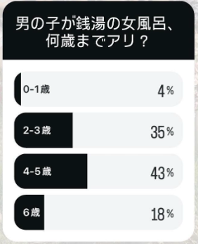 ■男児の女風呂利用は、「4~5歳までならアリ」が43%で最多