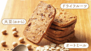通常のクッキーと比べても、栄養価は3枚で1/2日分の食物繊維が摂れるのも大きな特徴。