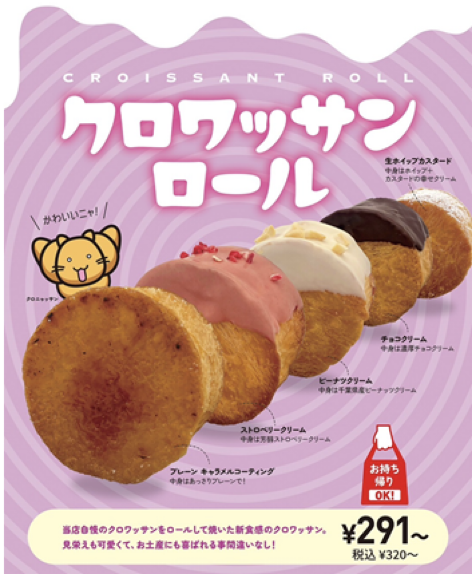 まるで大判焼きのような形をした、クッキーのような食感の進化系クロワッサンでプレーンも含めて、ストロベリー・ピーナッツ・チョコなど全5種類をラインナップ。