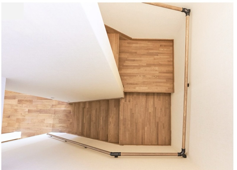そのため、階段は緩やかな勾配になるように設定し、手すりは1段目まで取り付ける。滑り止めも効果的