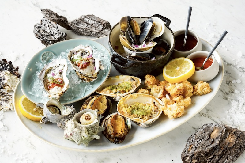 生牡蠣・さざえ・あわび・ハマグリ・ホタテ・ムール貝など旨みたっぷりの6種類の貝を様々な料理で楽しめるプラッター。