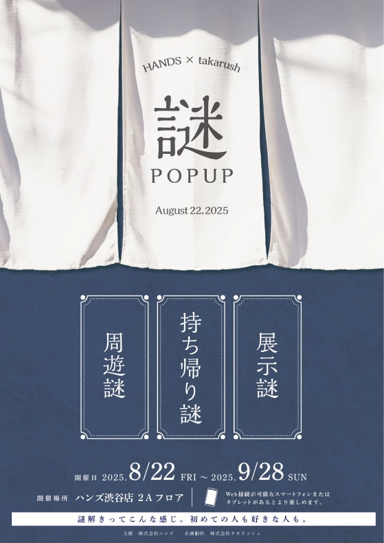 株式会社ハンズ(本社:東京都新宿区)は、2025 年 8 月 22 日(金)より、ハンズ渋谷店にて謎解きをお楽しみいただける「謎 POPUP」を開催いたします。