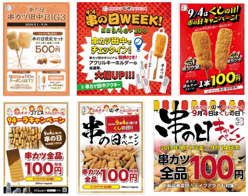 9 月 4 日は串(94・くし)の日!串カツ田中では毎年「串の日」にキャンペーンをおこなっております。