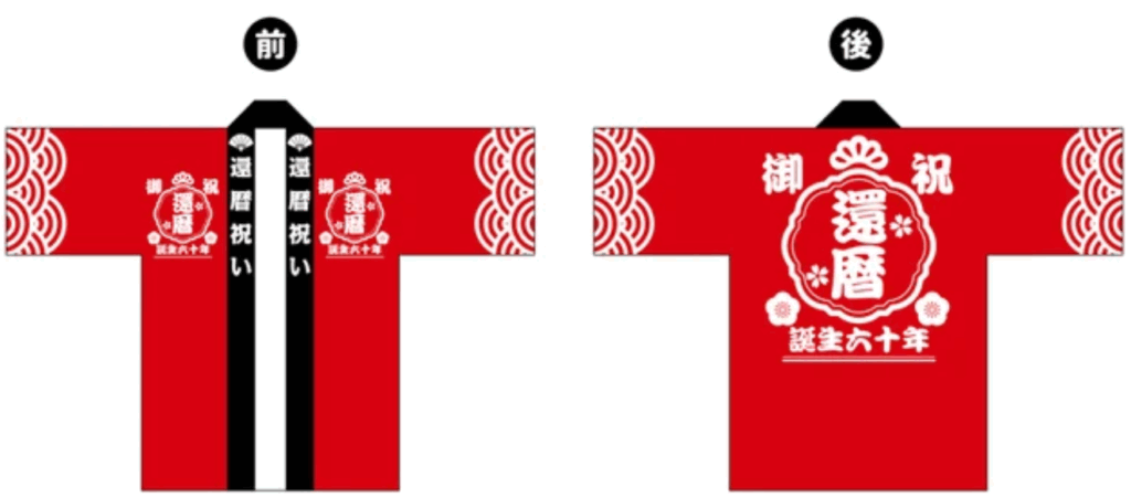 還暦のお祝いには、「赤い法被」もご用意可能です 。