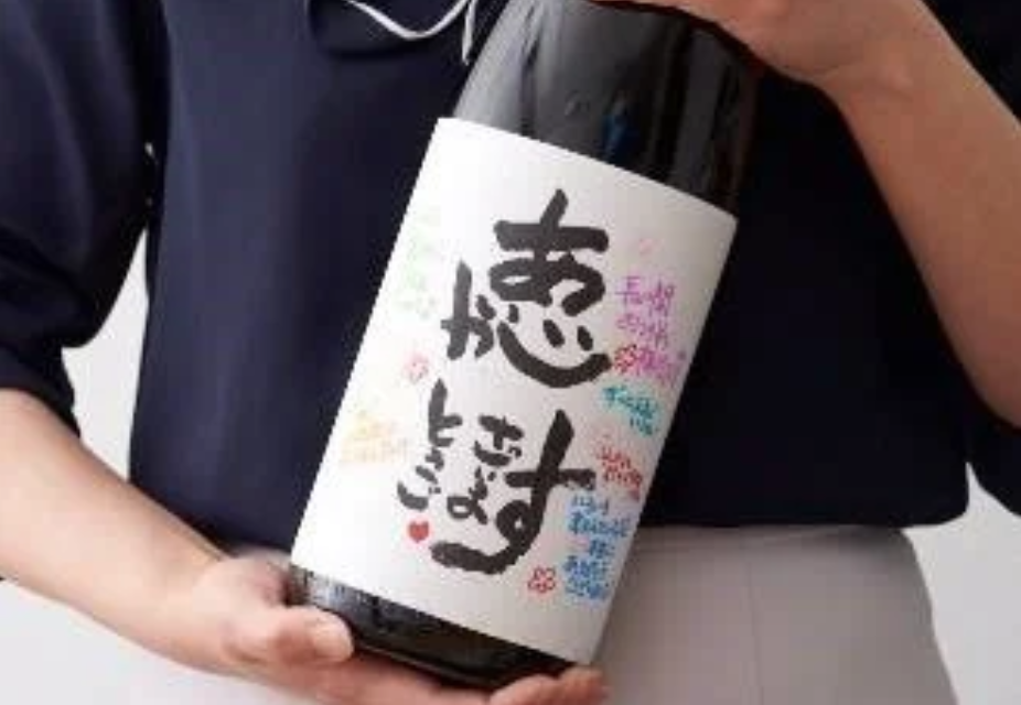 皆様の思いを寄せ書きにして、オリジナルラベルの焼酎ボトルをプレゼントしませんか?