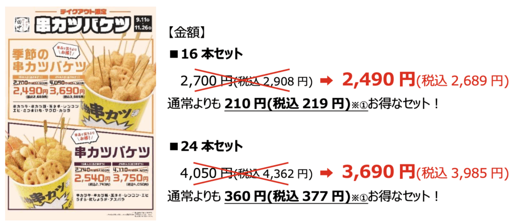 ▼期間限定の「季節の串カツバケツ」も販売中!「定番」か「限定」か、あなたはどっち派!?