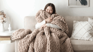 ベッドやソファでのリラックスタイムに、ひざ掛けや羽織りとして活躍するマルチユースブランケット