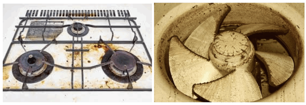レンジフード周り、コンロ周り、換気扇フィルター、換気扇、冷蔵庫上部や周辺、キッチンキャビネットの面など、油煙の付く部分は、寒くなる冬前の掃除がオススメ!