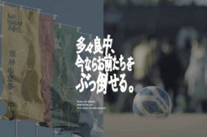 でも実は、 この大会には“地元の熱を生む仕掛け”が隠されています。 表向きは、市内の中学校5校によるOBのサッカー大会。 けれど実際は、参加することで改めて自身の地元を思うきっか けになり、 そんな若者が増え、まちの熱量につながり、さらには偶発的な出 会いや活動の起爆剤になる。
