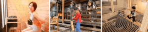 以前にも築 35 年の元機織り工場をヤギに会えるヤギ民泊「都留 BASE 」として生まれ変わらせたり、更に古い築 50 年の物件を再生させて創り上げた「コテージくつろぎ」はサウナや BBQ、珍しいペレットストーブがあったり、宿の吹き抜けには子供が大喜びするアスレチックネットが張ってある人気民泊にしています。