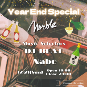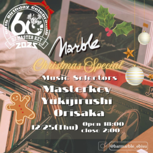 Bar Marbleでは、この冬もジャンルを横断したR&BSoulを中心にアナログレ コードをセレクト。新旧問わず幅広く取り揃えてあるUSR&Bのグルーヴから、 邦楽バラードの沁みるメロディ、さらに新進気鋭のアジアのSoulまで、温度感の あるサウンドをゆっくり楽しめる空間に。