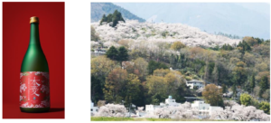 ( 画像左:120年ぶり!甲州富士川・本菱・純米大吟醸の復活) (画像右: 2000本の桜が満開になる、山梨県唯一の桜の名所百選、大法師公園)
