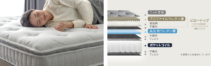 また、一般的なマットレスで気になりがちなコイルの当たり感も、ピロートップ構造によって大幅に軽減し、快適にお休みいただけます。