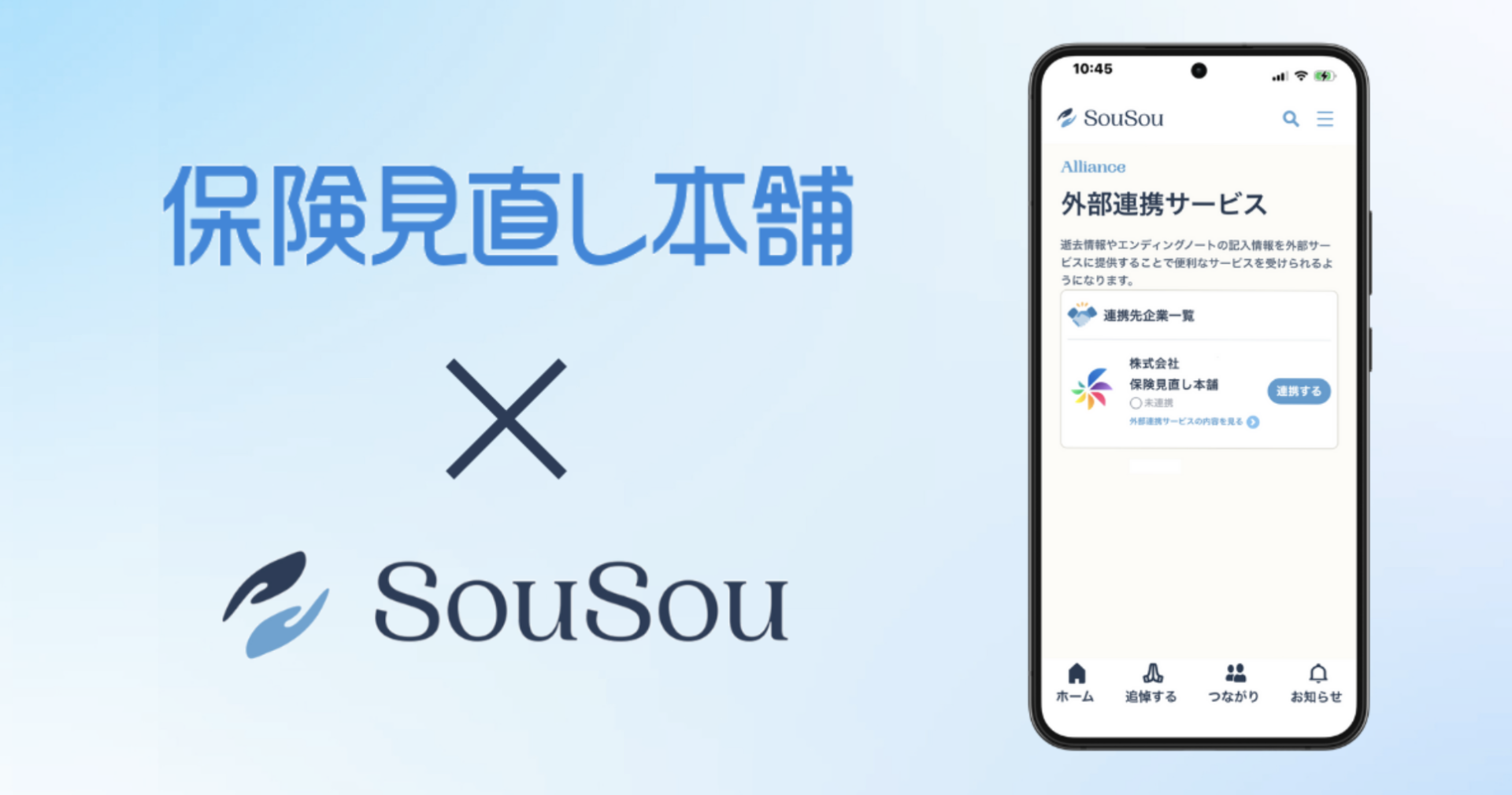 エンディングプラットフォーム「SouSou」を運営する株式会社そうそう(本社:埼玉県川口市、代表取締役:日下上総)は、株式会社保険見直し本舗と連携し、保険見直し本舗で生命保険のご契約をいただいた方向けに、保険金の請求漏れを防ぐ「保険金請求サポートサービス」を2026年1月19日(月)より開始いたしました。