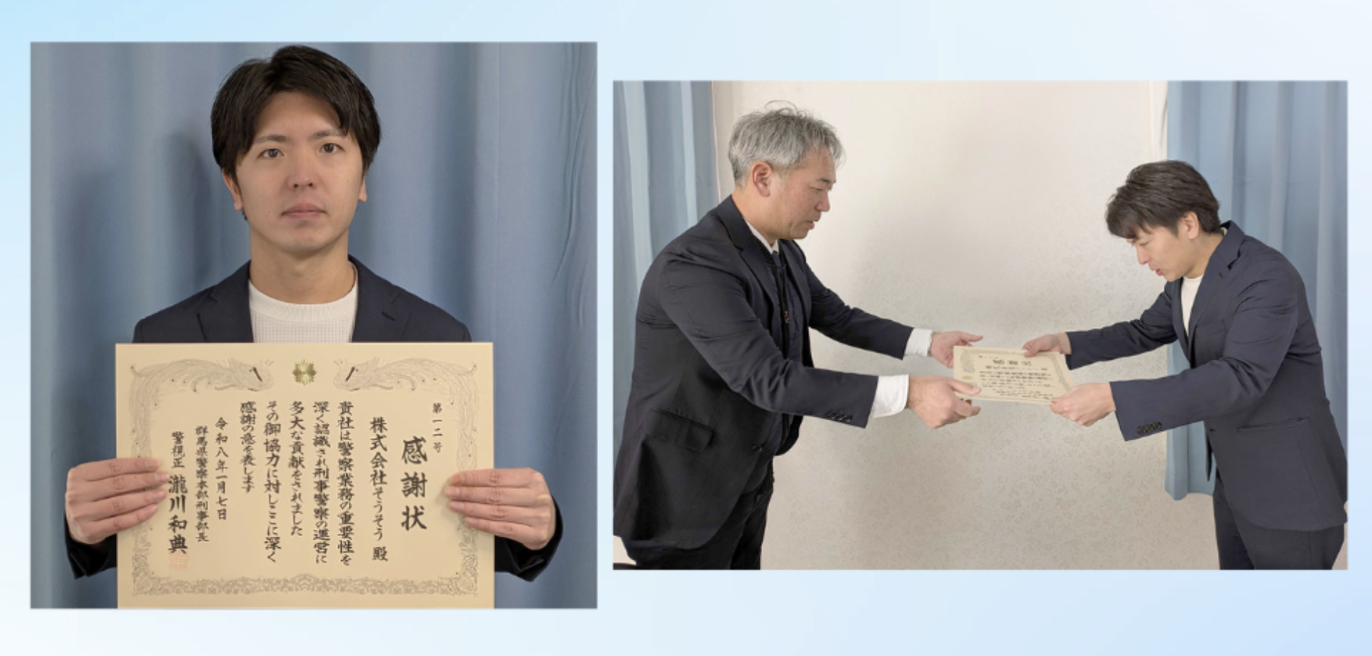 エンディングプラットフォーム「SouSou」を運営する株式会社そうそう(本社:埼玉県川口市、代表取締役:日下上総、以下「当社」)は、2026年1月、未解決事件に関する捜査協力の取り組みが評価され、群馬県警察より感謝状を受領しました。