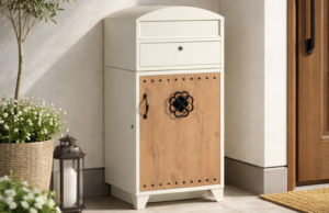 【木目を活かしたレトロなデザインの宅配ボックス】