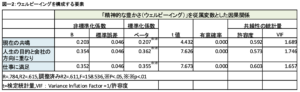 前頁の図ー2は、重回帰分析により、ウェルビーイング(精神的豊かさ)は何によって引き起こされるのかを表にしたものです。本調査の分析から、「現在所属している組織への共鳴」、「人生の目的と会社の方向性との重なり」、「仕事の満足」がかけ合わさることで、ウェルビーイングにつながりやすいことがわかりました。つまり、企業は従業員に対して、仕事におけるウェルビーイングを促すためには、この3つの要素を重視していく必要があることがわかります。