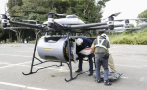 EH216L 機体展示 ─ 250kg 積載の物流用「空飛ぶクルマ」
