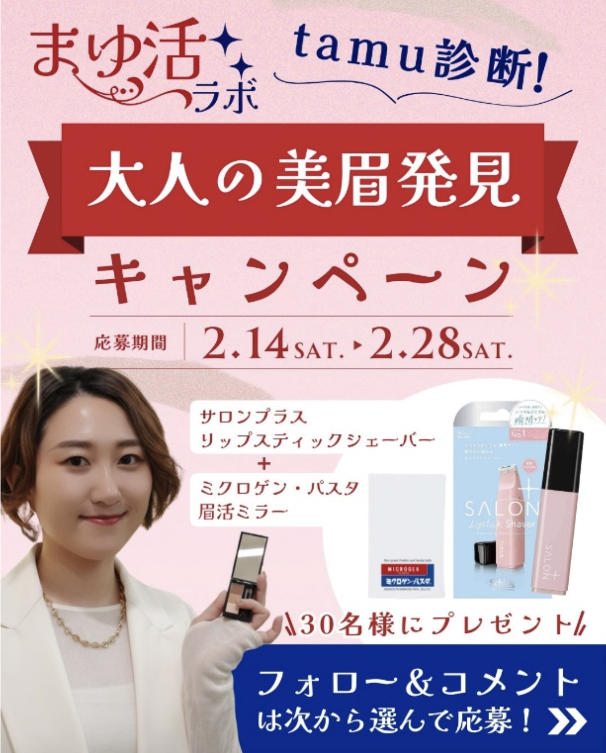 ミクロゲン・パスタ– 公式Instagramにフォローとコメントされた皆さんの中から抽選(30名様)にまゆ活グッズをプレゼント。また、寄せられたコメントはTamuアドバイザーがチェック。採用された悩みにについてはInstagram上で診断アドバイスを投稿してゆきます。