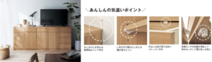 ①耐震ラッチ付き気遣いキャビネット 【揺れた時に扉が勝手に開きにくい】