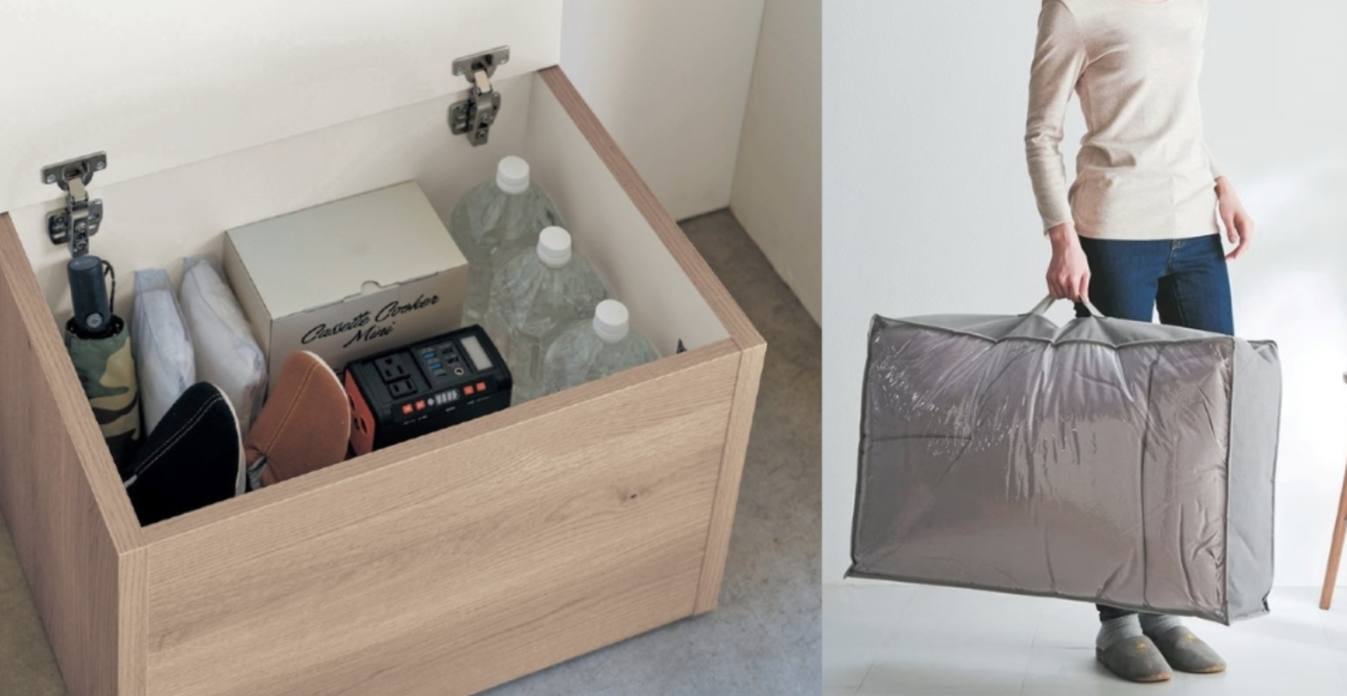 ・防災用品やペットボトルなどを入れて普段から備えられます
