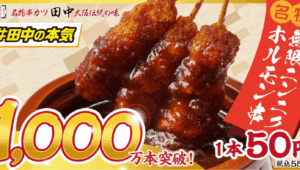 【あつあつホカホカ!串カツ田の冬の名物!】 ピリ辛!ぷりっぷりのホルモンの旨みが...